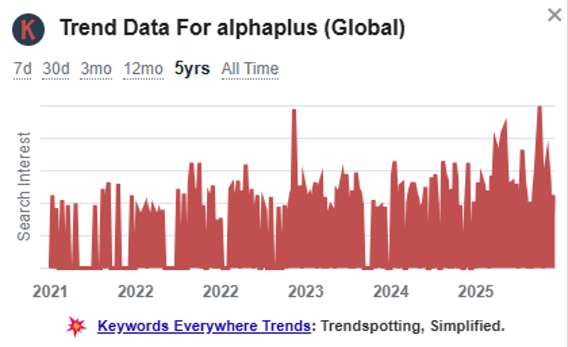 Looking at global trend data over the past few years, it can be seen that the search volume for “alphaplus” on Google has increased several times.