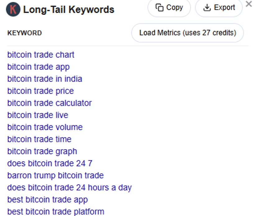 “Bitcoin” and “Trade” are among the highest volume, high-intent keywords in blockchain finance searches.