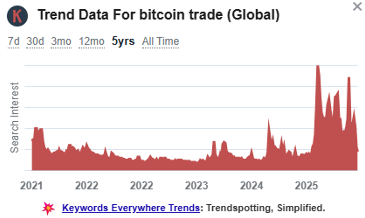 Looking at global trend data over the past few years, it can be seen that the search volume for “bitcoin trade” on Google has increased several times.