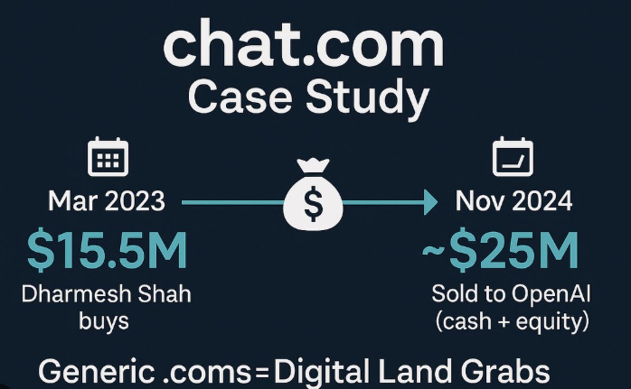 Chat.com sold for $15.5M (2023) for its direct language and relevance in communication.
