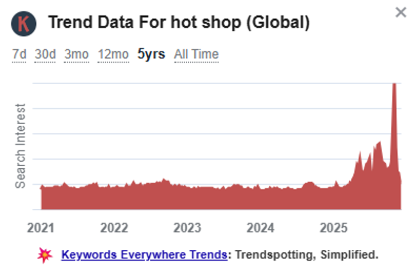 Looking at global trend data over the past few years, it can be seen that the search volume for “hot shop ” on Google has increased several times.