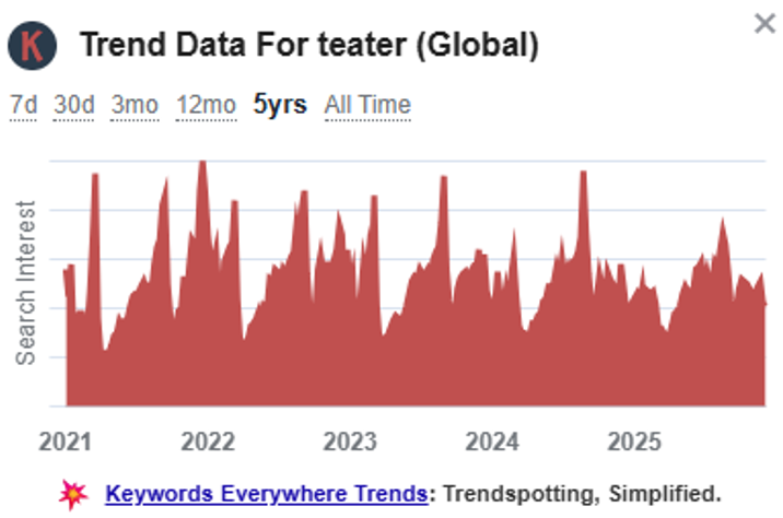 Looking at global trend data over the past few years, it can be seen that the search volume for “teater ” on Google has increased several times.